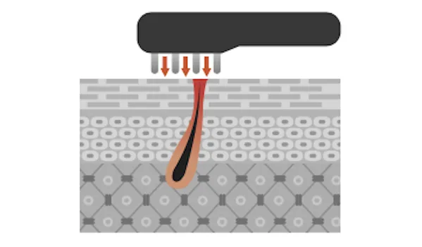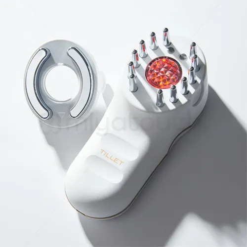 頭皮への溶液(育毛剤など)を頭皮にたっぷりとなじませ、指で全体にいきわたるようにもみほぐします。頭皮形状のTILLETのレベルを設定し(強め推奨)、モードをIONもしくはEMSに設定します。次に、頭皮に電極がしっかりと当たるように押し当てます。そのまま360度方向どこからも、頭頂部に向かってTILLETを動かします。