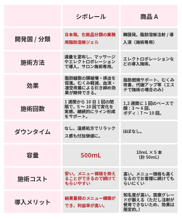 韓国の商品を使用して、シボレールも併用しています。どちらも好きですが、施術単価を安く設定できるため、お客様が続けやすく、喜ばれています。